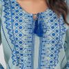 Neckline: Round neckline with detailed embroidery and a small tassel in the center